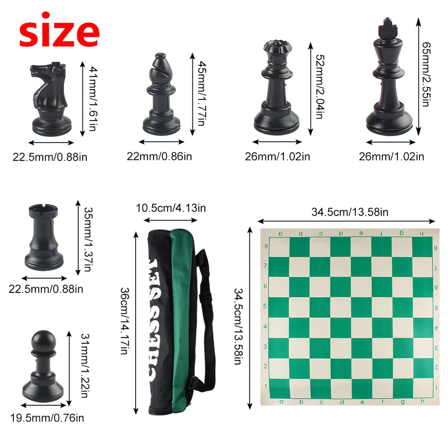 *Products include: 32 chess pieces, 1 rollable chess board, and 1 packaging storage tube.