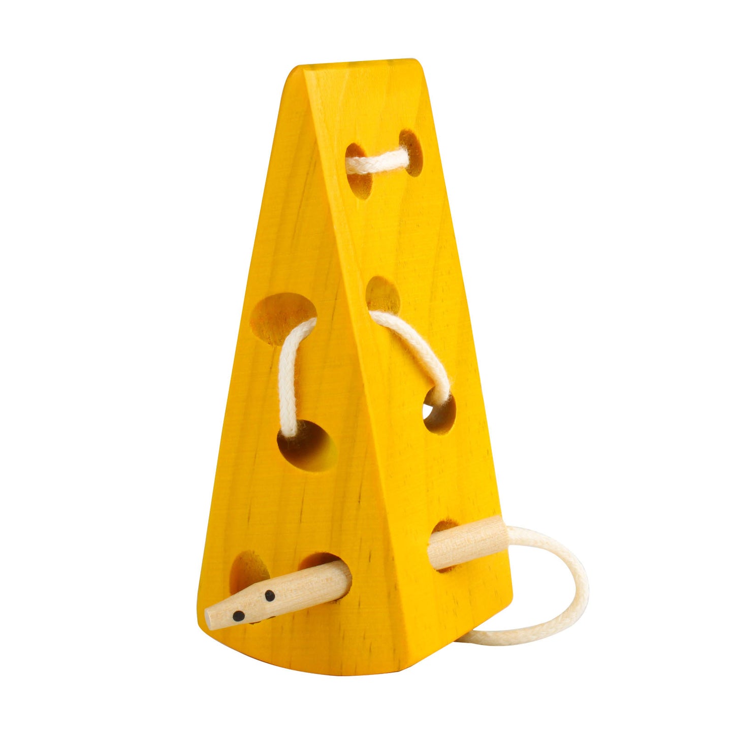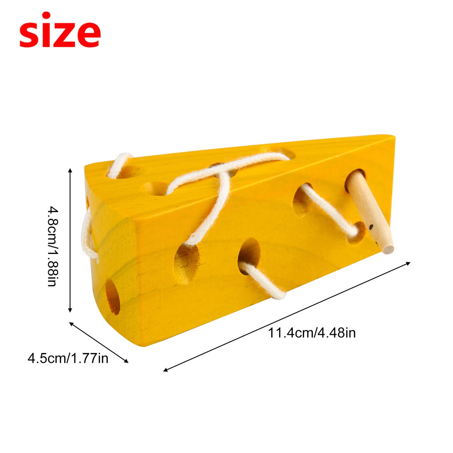 Fun cheese toys for toddlers, help the mouse eat through the cheese and go through the holes of the wooden cheese block. About 60g and 10.5*5cm, it fits small baby hands.