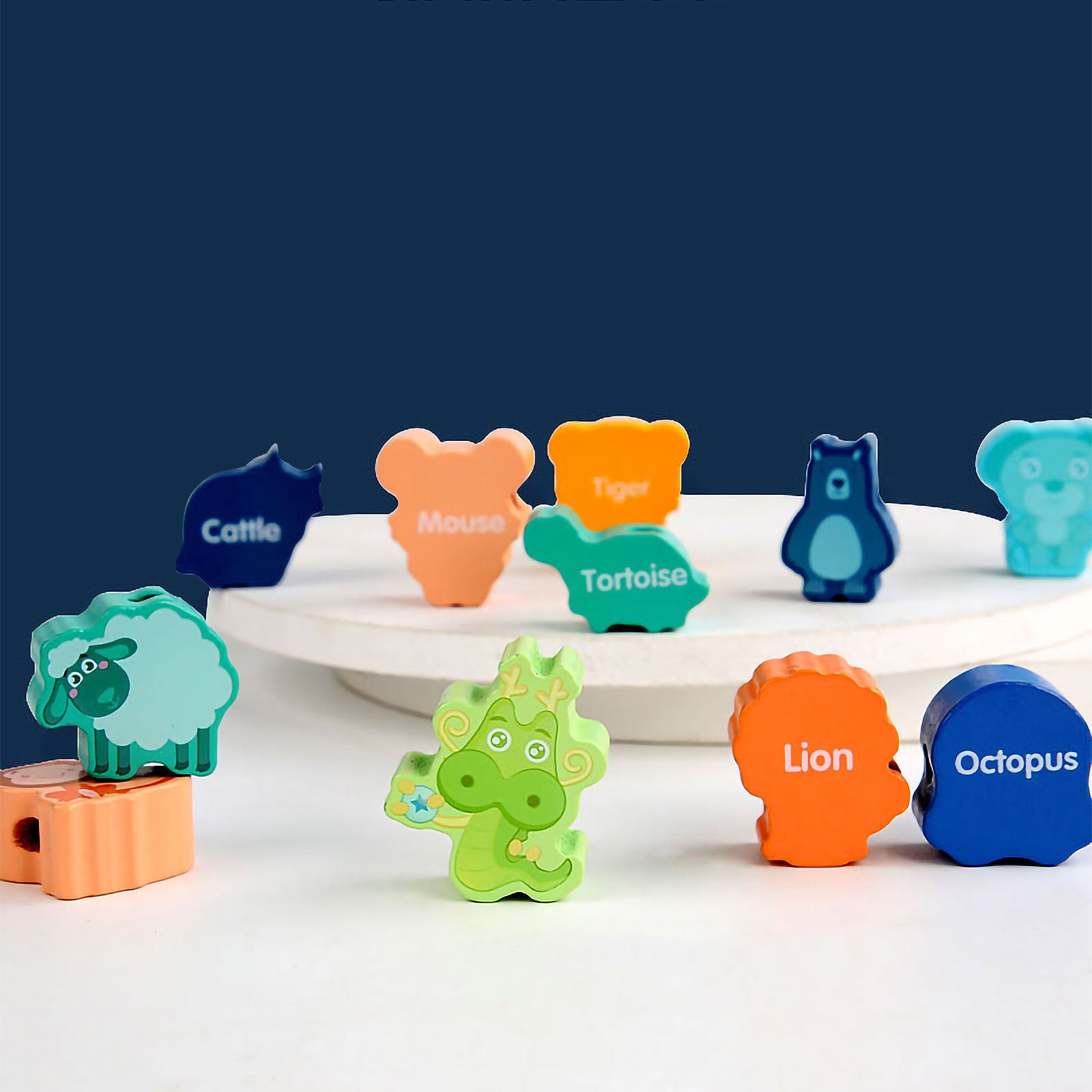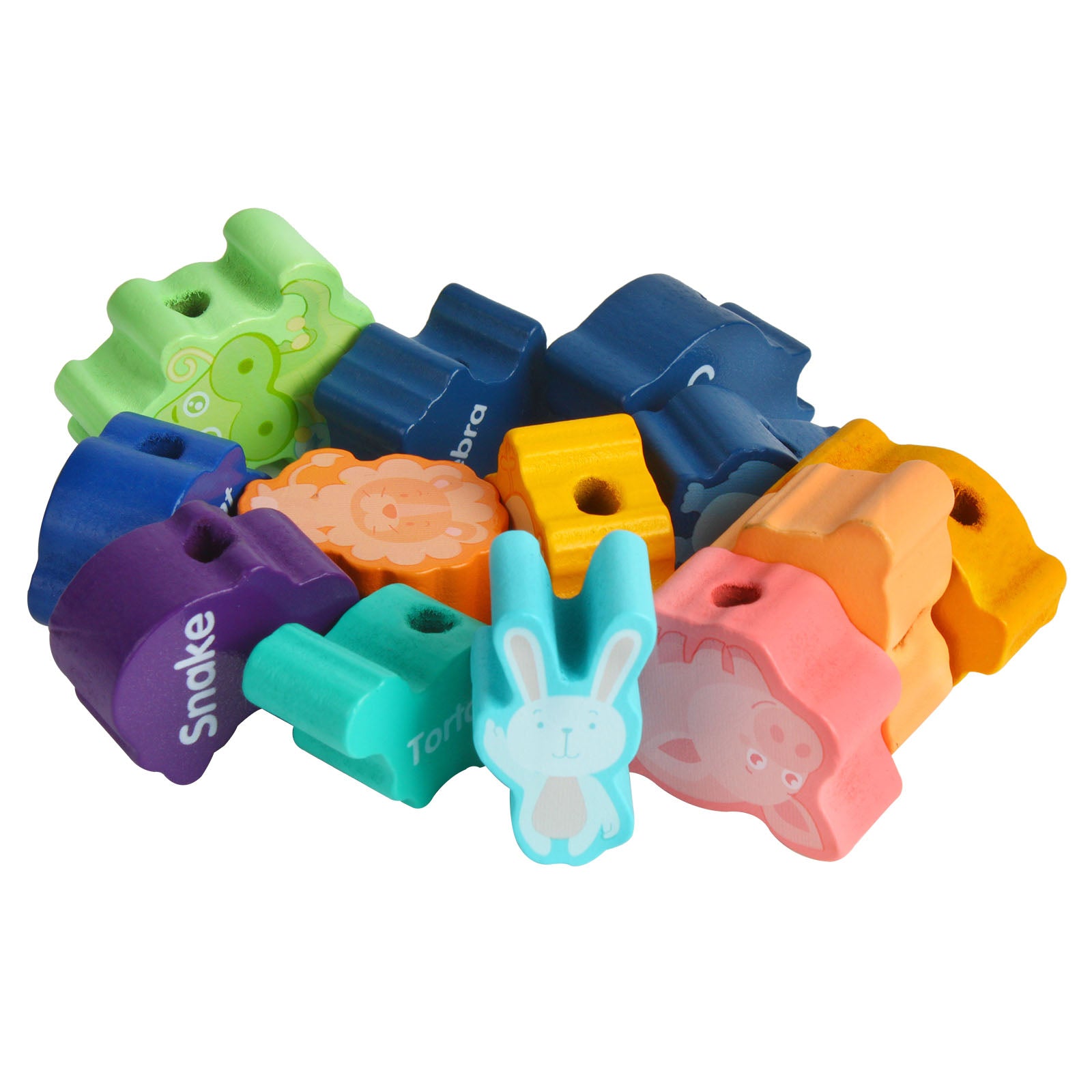 NOOLY 22 Pieces Wooden Lacing Beads for Toddlers CSJM-01 (Animal )