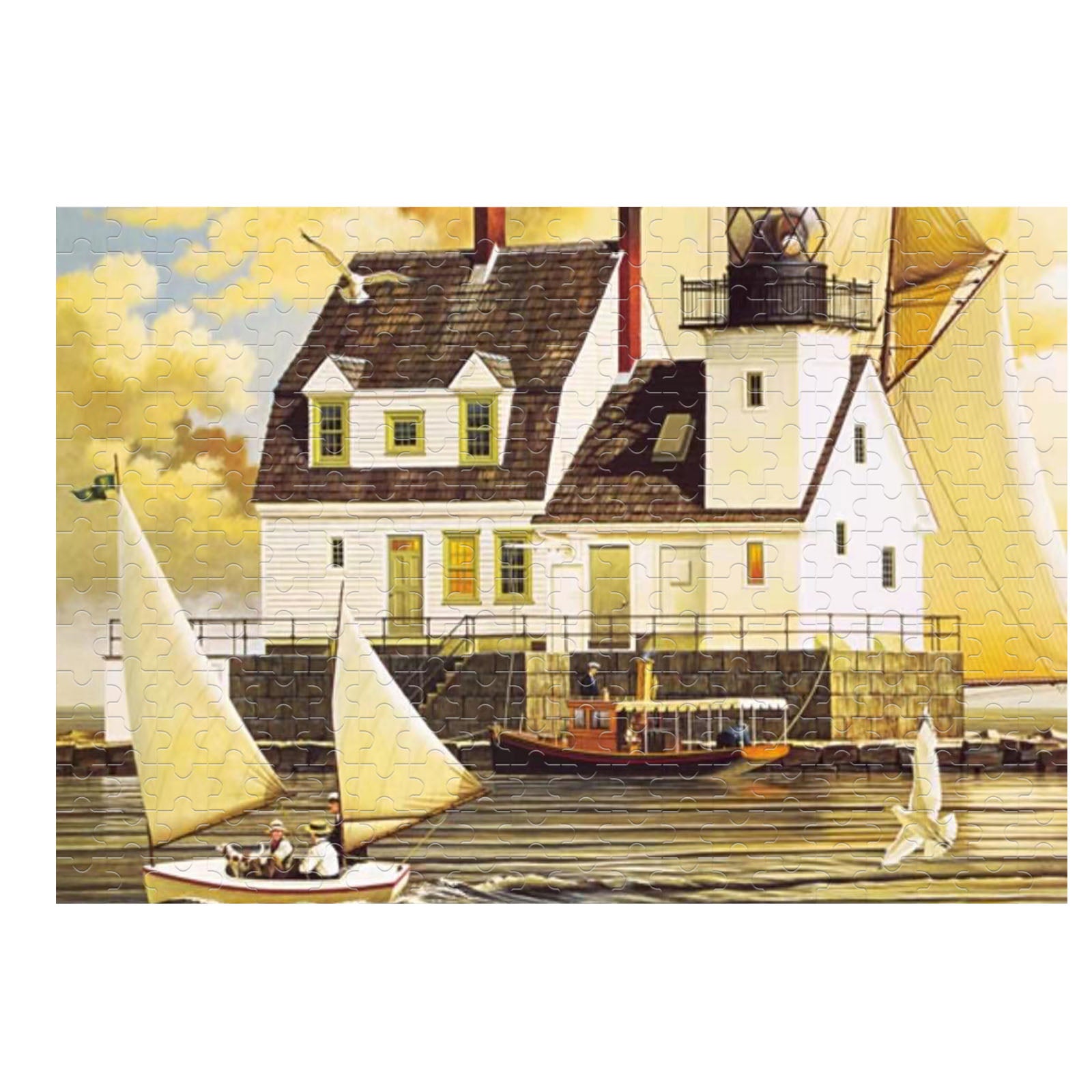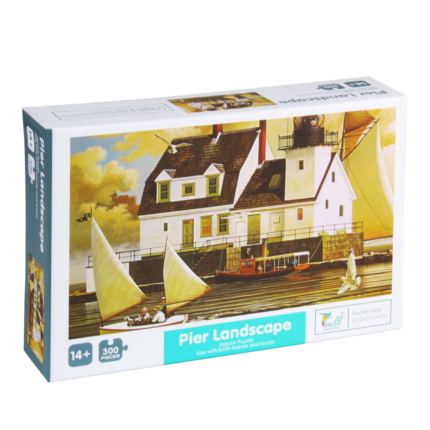 Contains 300 pieces puzzle and a poster. It can create a beautiful scene- Pier Landscape!