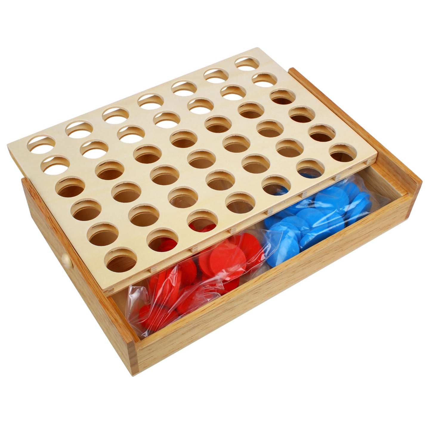 *2 parties, 4 points with one colors in a line to win, no matter horizontal, vertical or diagonal.