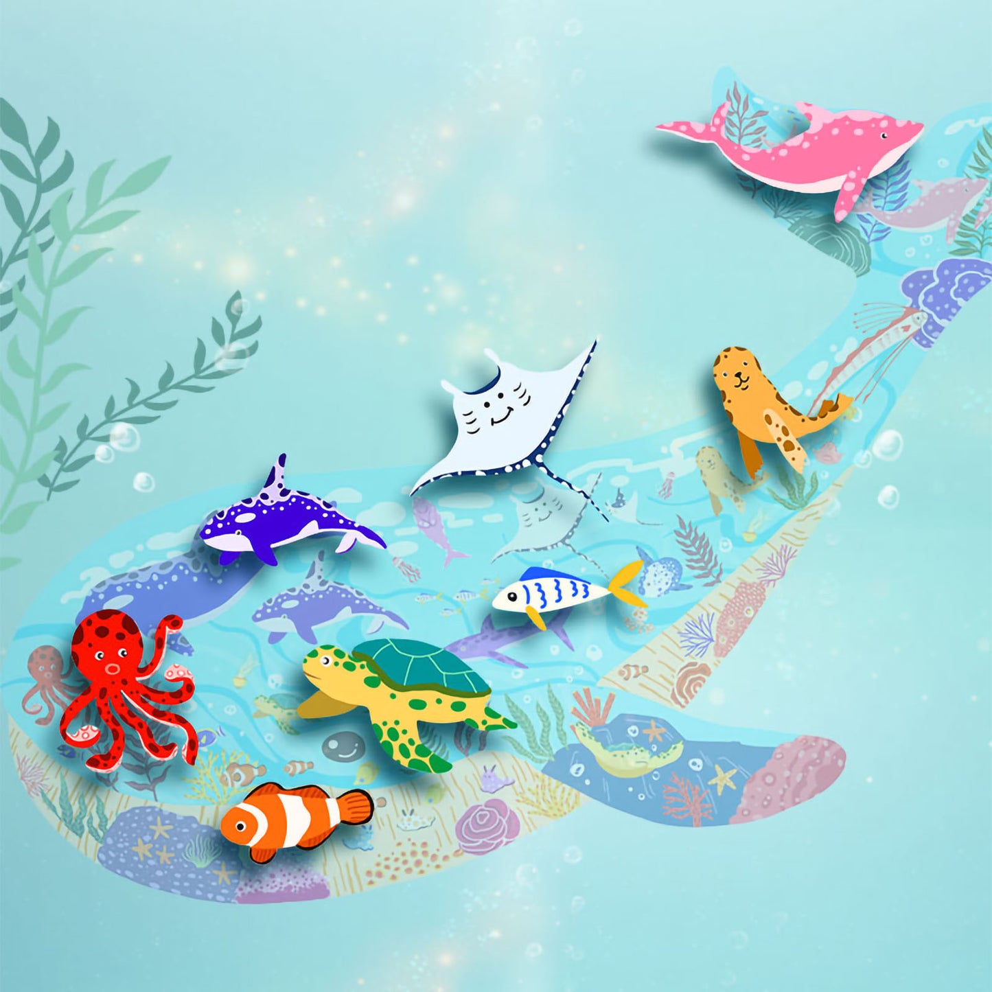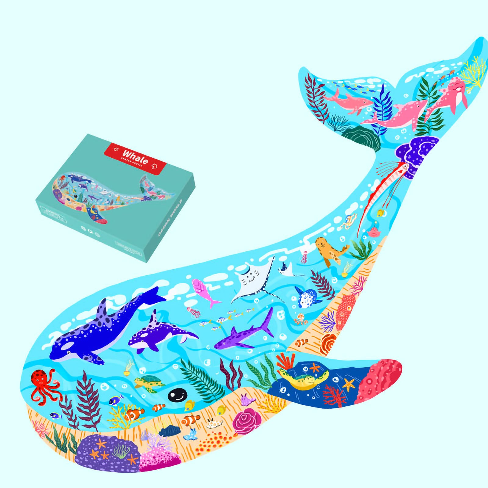 *Whale: 50 pieces jigsaw puzzle is 19.29x14.17inch(49x36cm) when completed.