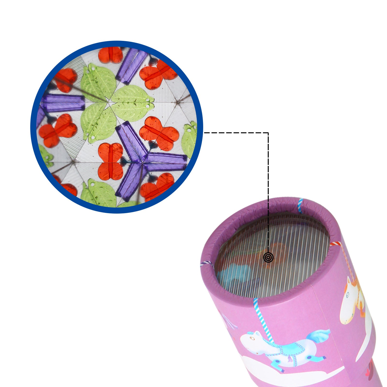 *Rotate the kaleidoscope, kids can see the different wonderful changing patterns through the hole, which can cultivate their logic and creativity and arouse their curiosity and imagination.