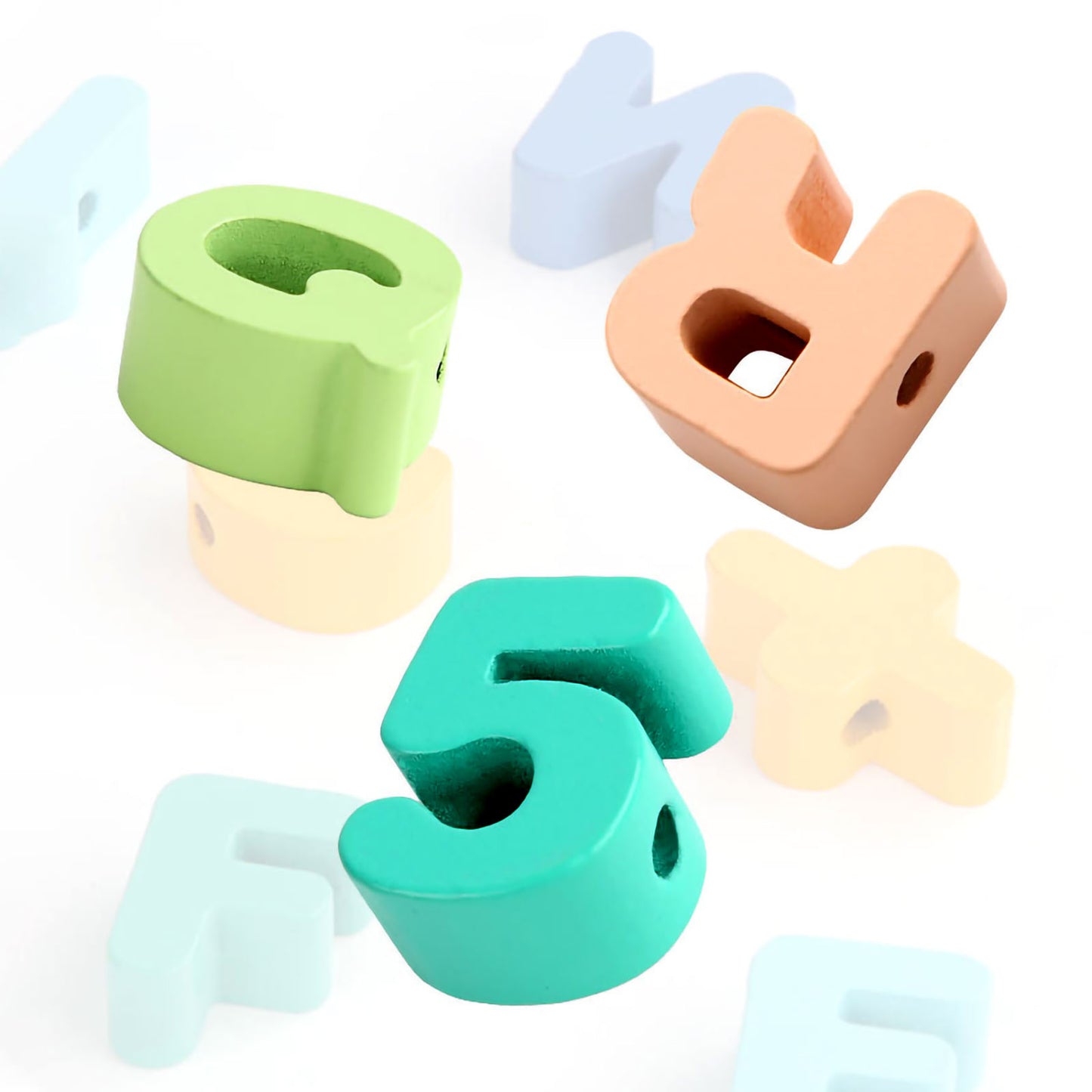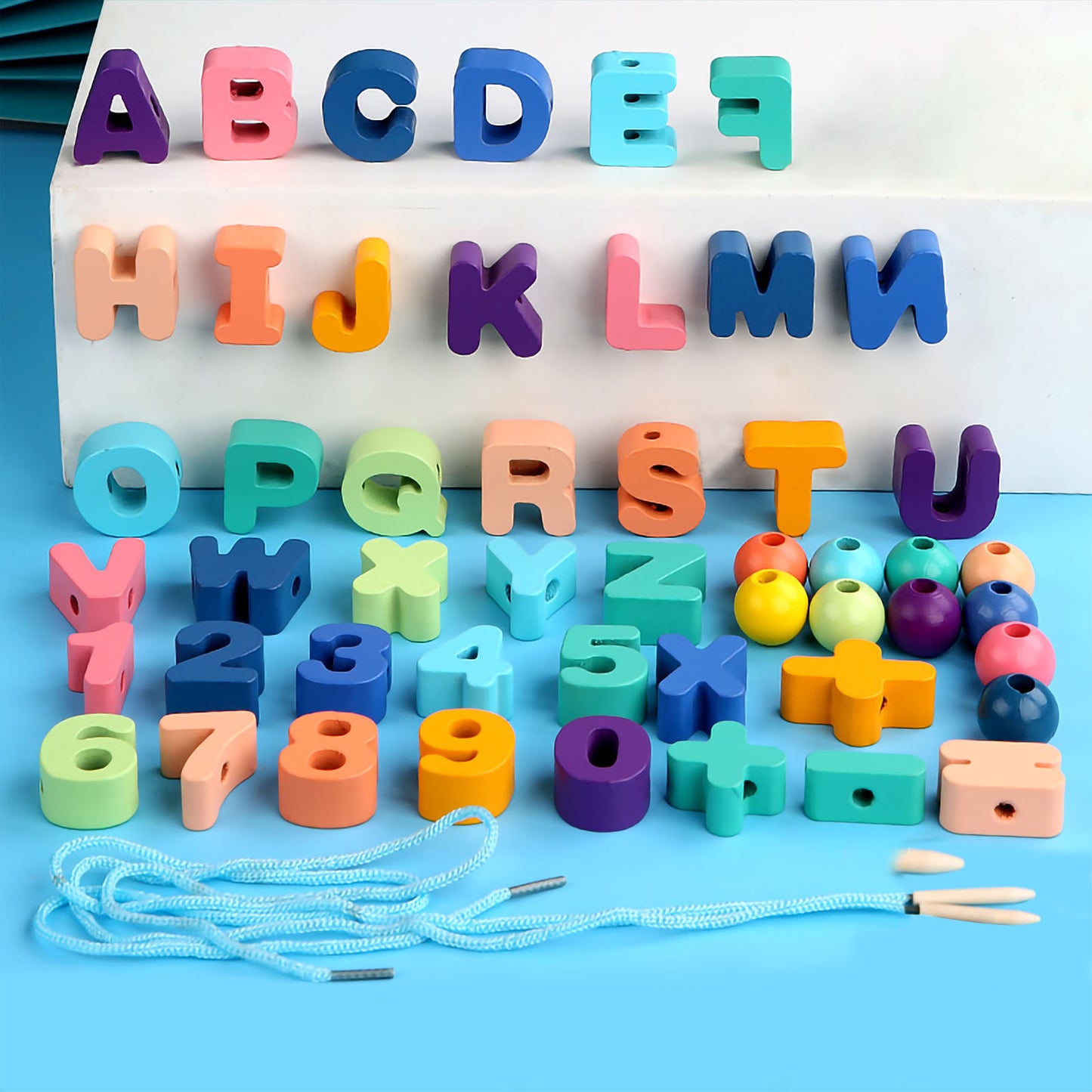 NOOLY 51 Pieces Wooden Lacing Beads for 3 Year Old CSJM-01 (Letter and Number )