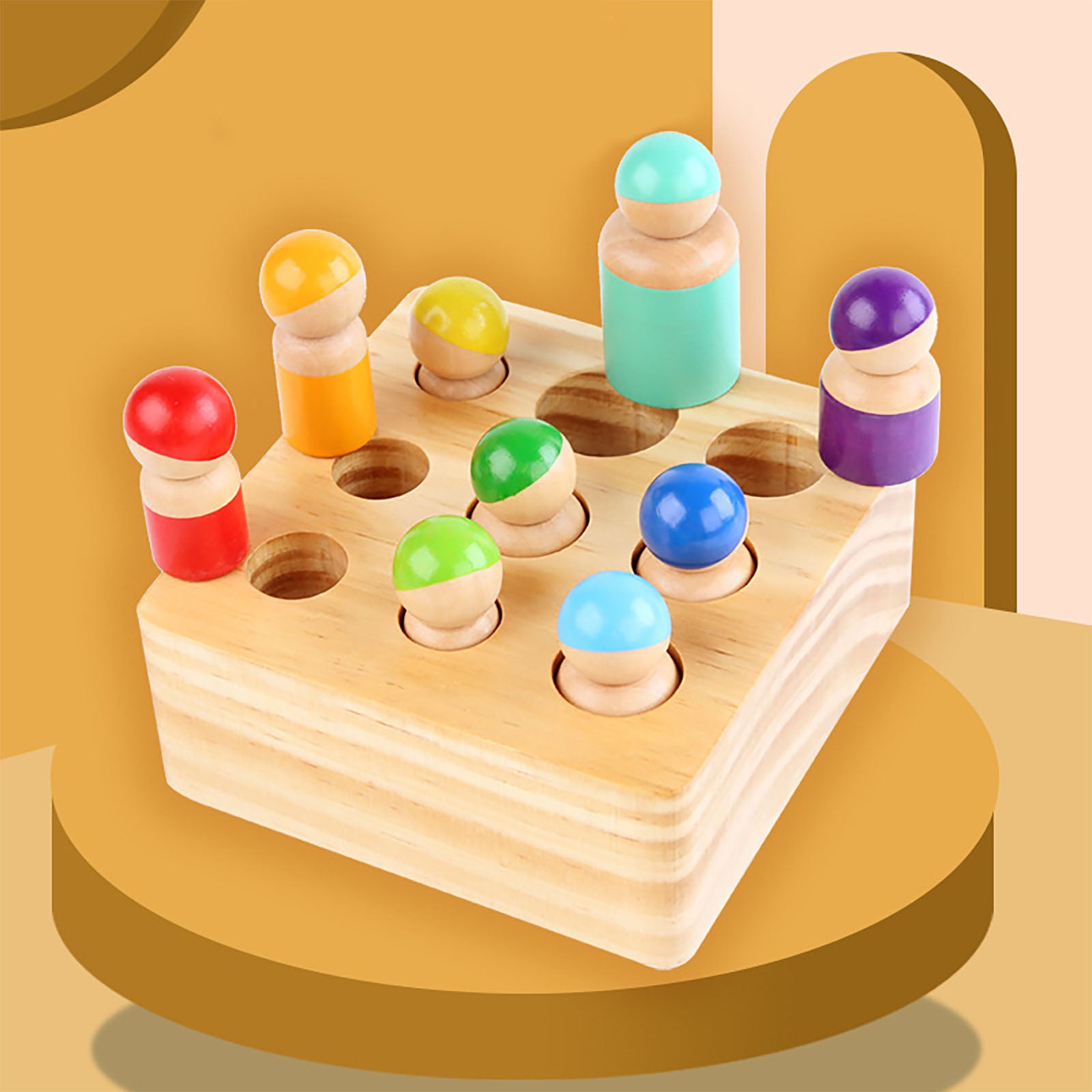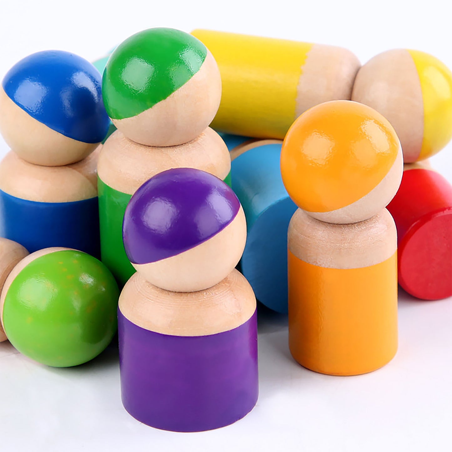 *The wooden peg rainbow dolls is a learning toy for toddlers to exercise hand-eye coordination.